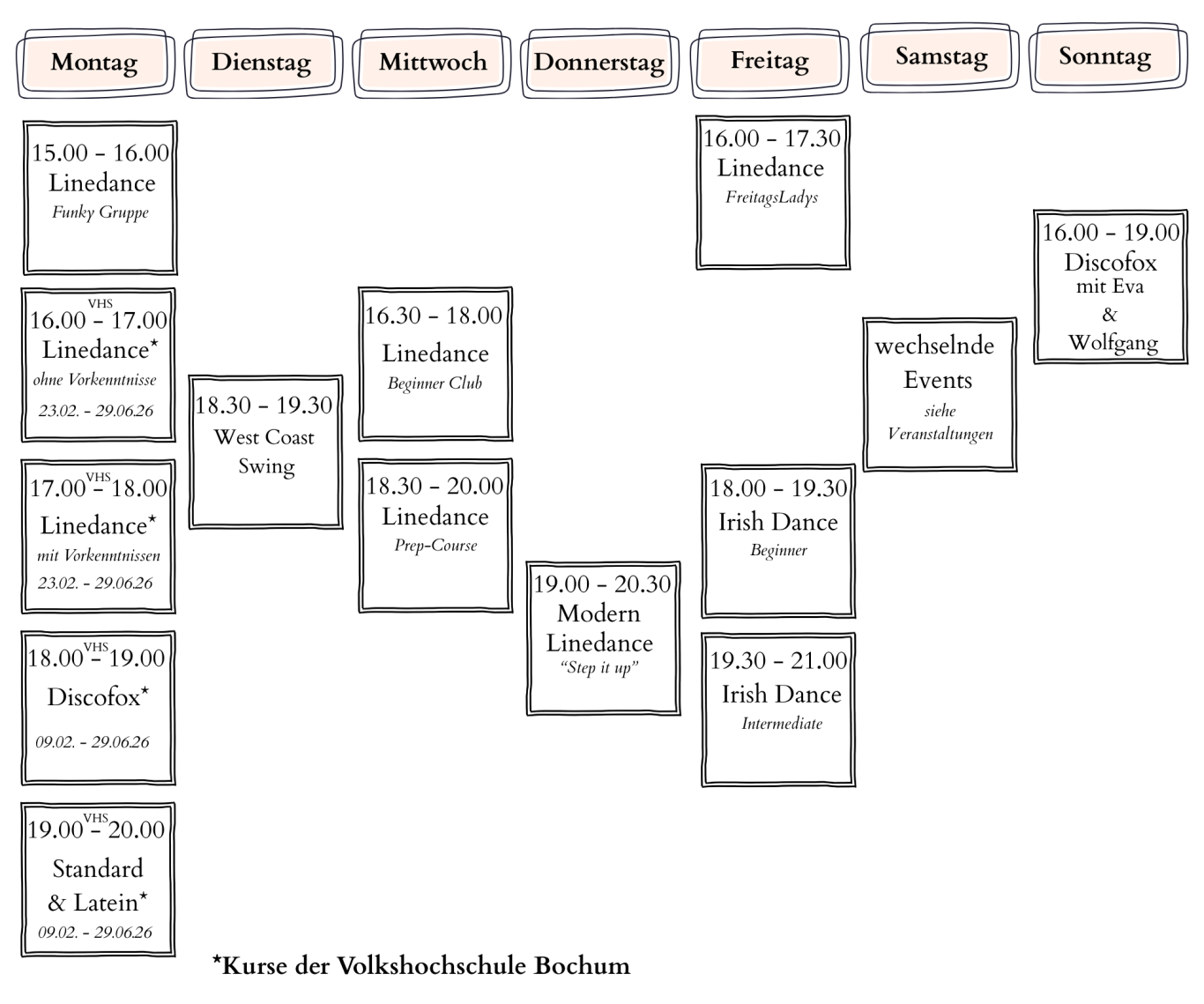 Wir bitten Sie, sich für alle Kurse anzumelden.